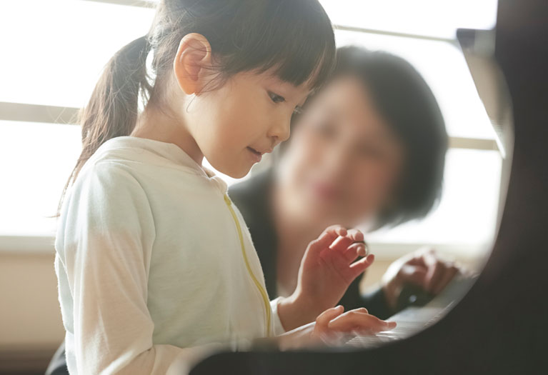 音楽が好きになり、ピアノを弾くことが楽しいと感じるレッスンを大切にしています。お子様の個性を重んじ、ご家庭の教育方針に耳を傾けた導入期のテキスト選びを心がけ、音楽の基本的な要素が自然に身に付くように、ソルフェージュや楽典も取り入れています。小学生からレッスンを継続している方は、中学生になると合唱コンクールでピアノ伴奏。発表会ではクラシックとJ-POPを弾きこなしています。また、小・中学生には受験や部活動とのバランスに配慮したレッスンを行います。