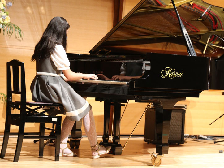 音楽が好きになり、ピアノを弾くことが楽しいと感じるレッスンを大切にしています。お子様の個性を重んじ、ご家庭の教育方針に耳を傾けた導入期のテキスト選びを心がけ、音楽の基本的な要素が自然に身に付くように、ソルフェージュや楽典も取り入れています。小学生からレッスンを継続している方は、中学生になると合唱コンクールでピアノ伴奏。発表会ではクラシックとJ-POPを弾きこなしています。また、小・中学生には受験や部活動とのバランスに配慮したレッスンを行います。